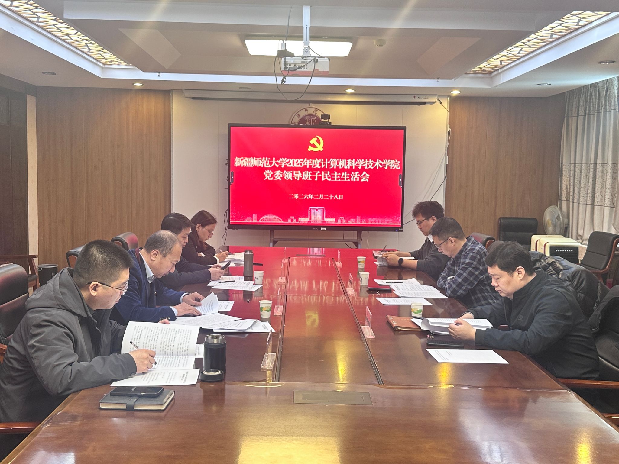 根据校党委工作要求,2026年2月28日上午,计算机科学技术学院2025年度党委领导班子民主生活会暨巡察整改专题民主生活会在昆仑校区国际教育大厦531会议室召开。校党委第八督导组组长于乐、副组长苏闻宇、督导组成员贾辉到会指导。学院领导班子全体成员参加会议,会议由学院党委书记张海军主持。